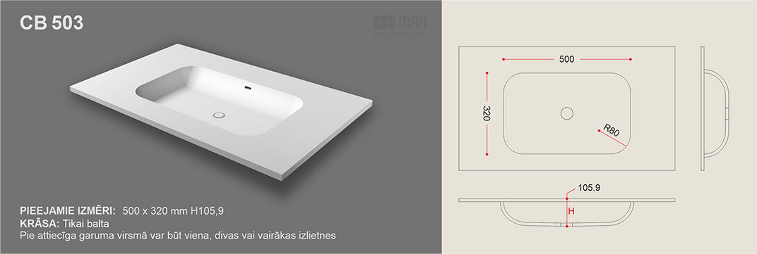 Uzliekamās vannas istabas izlietnes nopērkamas atsevišķi no virsmām
